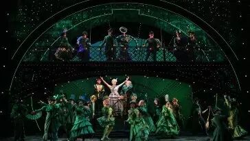 《魔法坏女巫》制造了一个宏大而极富想象力的舞台——悬于穹顶的神秘地图,盘旋舞台之上的霸气飞龙,从天而降的"格林达"泡泡船,充满未来科技感的"奥兹大脑",一个接一个震憾的场景随着剧情推进接踵而至。300台灯光装置营造出的奥兹翡翠王国令人目不暇接。