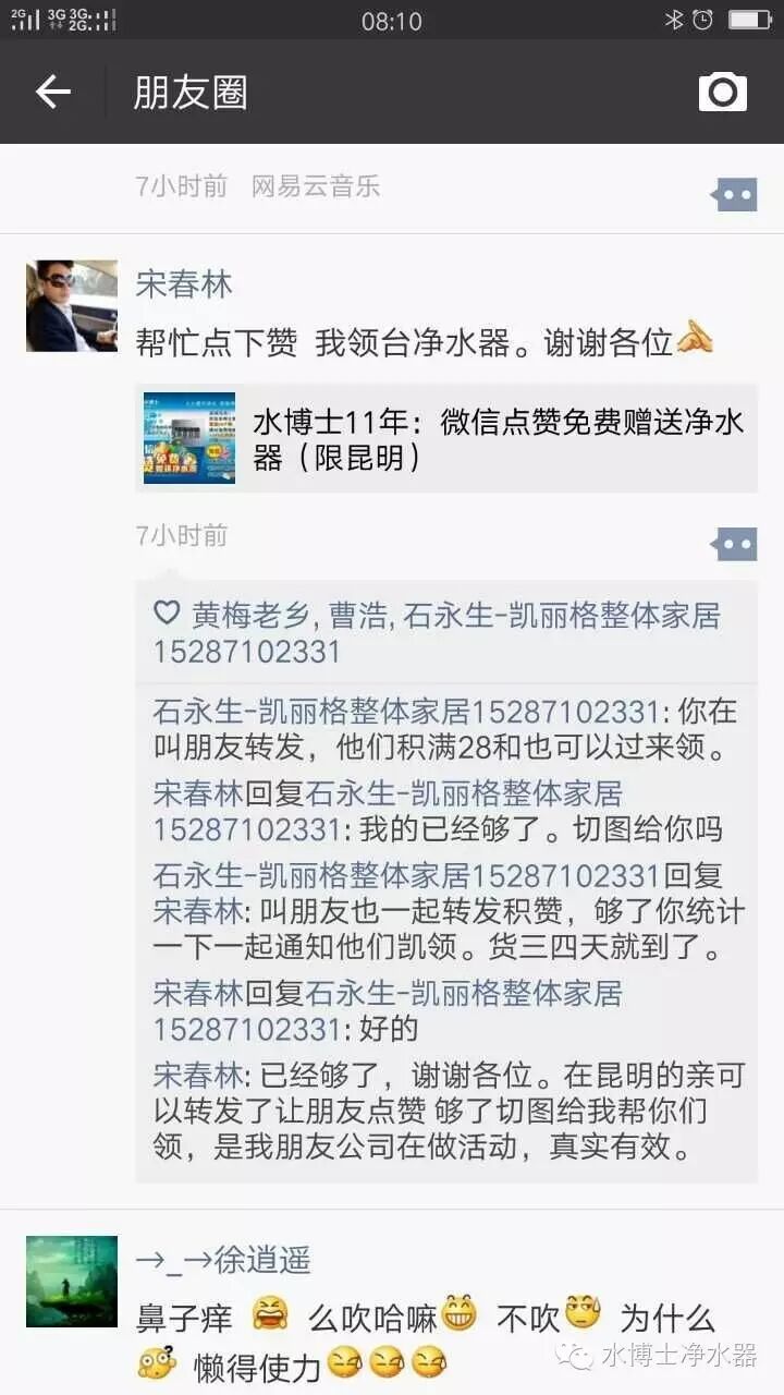 增城“398微信点赞送机”活动,前来领取净水器的消费者