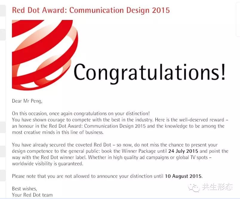 【共生快讯】共生形态喜获2015德国红点传播设计大奖