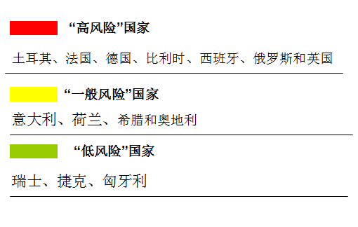 除了土耳其,欧洲还有以下这些国家被列入存在风险的国家。2016年当地时间6月28日晚,伊斯坦布尔阿塔图尔克国际机场国际机场的自杀式爆炸案发生后,英国外交及联邦事务部(British Foreign and Commonwealth Office)将欧洲多个国家划分为三个风险等级,详见下表