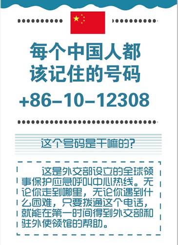 万一在国外遇到突发事故,等,你千万要记得以下这个电话