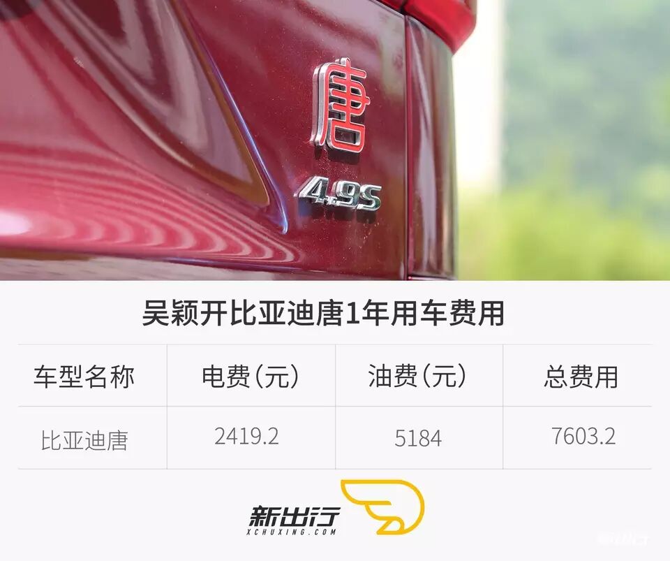此前我们实测唐用混动模式平均油耗约为 8L 左右,周末 200 公里使用混动模式行驶,消耗燃油 16L。如果也按照加 98# 汽油计算,需花费 108 元。一年下来的油费大概需要 5184 元。加上平时充电花费的电费,一年下来唐的用车费用大约为 7603 元。