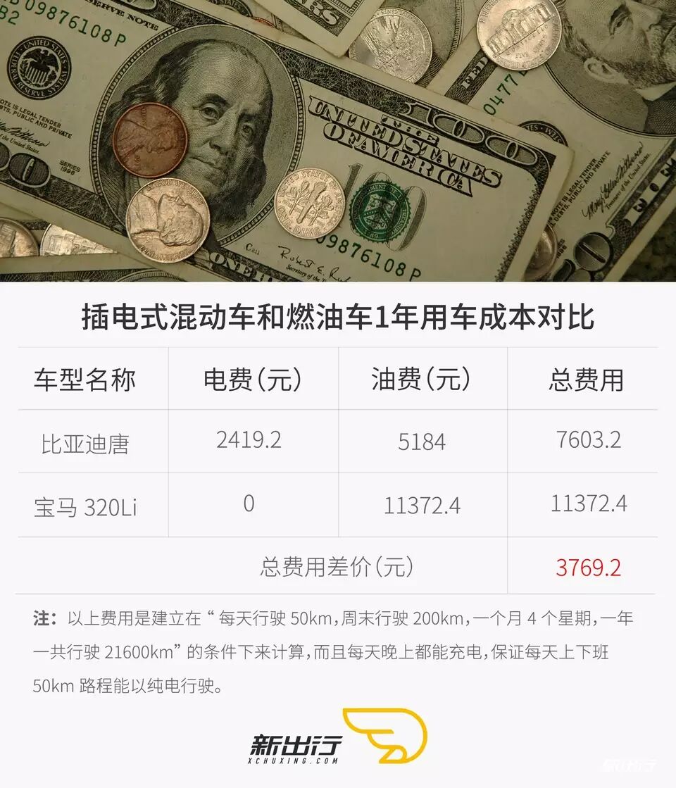 因为购买插电式混动车最大的优势在于日常上下班可以完全用电行驶,不需要花费汽油,这是一项主要的费用。所以这次仅仅对比平时的用车费用,包括油费、电费,看看一年下来吴颖购买了插电式混动车后相比燃油车一年能省下多少钱。