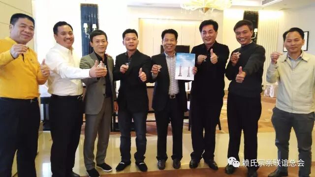 号外喜讯:受振元会长委托,松谷、卫东两位会长前往广东与各宗亲确认捐款和设立名望柱事宜。广东省分会执行会长赖华和常务副会长、。2017年2月26日,松谷、卫东两位会长在广州威尼国际酒店与满谷、国传、木杨、赖华等认捐古赖国文化园建设500万以上的各位宗亲会面。松谷、卫东两位会长详细介绍了第三届总会换届以来开展的各项工作,在振元、松谷、卫东、满谷三位宗长带头认捐1000万元的带动下,全球赖氏宗亲热情捐款。世界赖氏总祠建设如火如荼,进展顺利,总祠及文王殿今年祭祖前能够竣工。今年农历三月十八,叔颖公尊像开光和祭祖同时举行,届时,宗亲们将能一睹叔颖公的英武风采和总祠的雄威庄严。