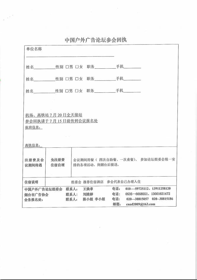如有疑问,请致电中国户外广告论坛组委会联系人:王焕章010-59725112/13911258120