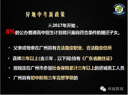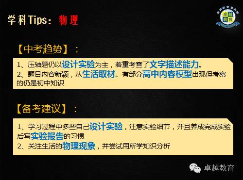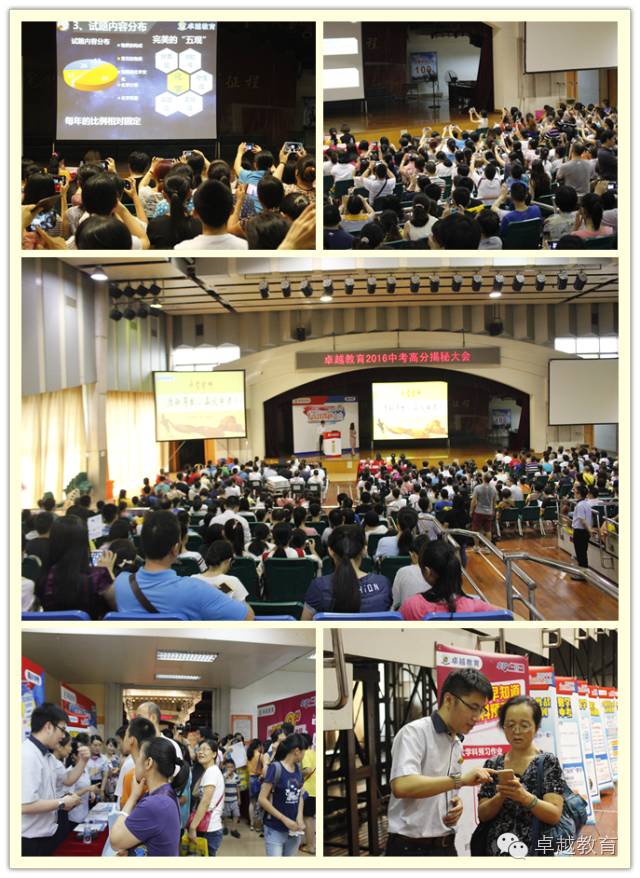 16号上午9点整,在越秀中路省实中学初中部礼堂惊现一大批家长与学生,原来目标都是参加卓越教育2016中考高分揭秘大会,获取2017中考备考指导,一起来感受下现场的盛况吧!大会开场,由卓越教育高级校长黄小红女士为到场的学生家长率先解读2016年中考大数据。2016年广州市中考报名总人数减少4861人。其中户籍人数较上年减少6990人;非广州户籍人数较上年增加2129人。然而各批次提供给借读生的公办计划共4350个,同比略有减少。今年借读生人数与计划数之比约为7.7:1,比去年6:1、前年的5:1竞争更加激烈!其中非户籍生录取线最高比户籍生高185分!2017年异地中考新政,公办普高拥有8%招生计划!紧接黄校的精彩演讲,卓越教育初中化学产品负责人庄绿平老师,为大家讲述2017年应届初三学生如何“赢爆化学”!庄老师分析,化学是一门相对独立自主的科目,也就是说不管你的其他科目成绩如何,在这里,大家都站在同一条起跑线上,每位同学都有可能拿到颠覆以往的新成绩…差的可以来个大翻身,好的可以更好。所以初三上学期化学的起步十分重要!化学考核的内容非常多,12个单元,47个考点,共110个识记知识点,大量元素符号、实验现象结论、化学方程式等等,知识点之间环环相扣,均需要学生循序渐进,从巩固基础开始!而化学中的重头戏——化学实验,则需要注重课本,找好规律和方法,因为大部分的实验都需要学生凭书本及想象思维的,平时也应该更注重生活实际,带着发现的眼睛去观察身边的化学现象!语文科由卓越教育初中语文产品负责人傅思华老师主讲,傅老师对于今年中考语文的点评高度归纳:关注自身发展,注重生活性、实践性、应用性。逐年语文考查要求呈整体上升趋势,