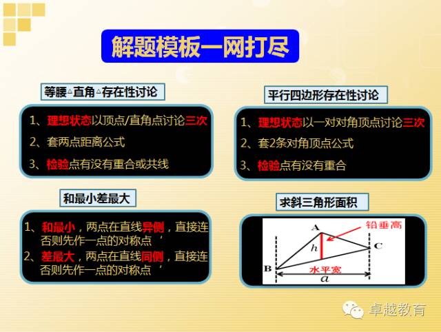 最后压轴出场的是卓越初中数学产品负责人陈倩薇老师。倩薇老师认为,无论世事变改,数学,依然是中考上名校的关键,考好一点的高中数学需要120分才给力,要考上六大名校妥妥的更是需要130分才具有竞争力。要上120分,中档题是关键,要上130分,压轴题是关键!建立数学模型,会变通,会举一反三,这是学霸们背后的秘技!学会如何套模板,解题自然更简单,学会有技巧去解题,备考自然省时!模板是需要靠积累的,除了平时多做题,来卓越更是给你传授大批实战“模板”!除了赶快收藏以上备考建议以外,如果想在新学期起步阶段快人一步,暑期初中定位考你一定不能错过,赶快扫描以下二维码抢报啦!