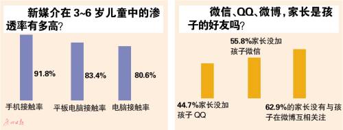 这也是国内首次专门针对儿童网络安全问题进行的最大范围的专题调研。报告由广州市少年宫牵头,联合全国18个主要城市青少年宫,对20000多名3~14岁儿童及其家长进行了调研和分析。该报告指出,如今儿童数字化成长出现明显的低龄化倾向,早在幼儿园时期(3~6岁),手机接触率为91.8%,平板电脑的接触率为83.4%,电脑的接触率为80.6%。到了小学中年级(9~10岁)时,儿童的媒介使用行为迅速拓展,初步发展到和成人使用行为相差不多的“小用户”。初中(13~14岁)时期还进一步成为新媒介传播者、创造者,数字化技能的很多方面都超过了父母。儿童在个人隐私保护方面存在隐忧:“如果在网上要你填真实资料,你会怎么办?”只有32.5%的孩子会先询问父母意见,而直接填的比例从小学低年级的2.9%上升到初中的10.5%。调研报告指出,家长的失误是导致风险加大的原因之一。