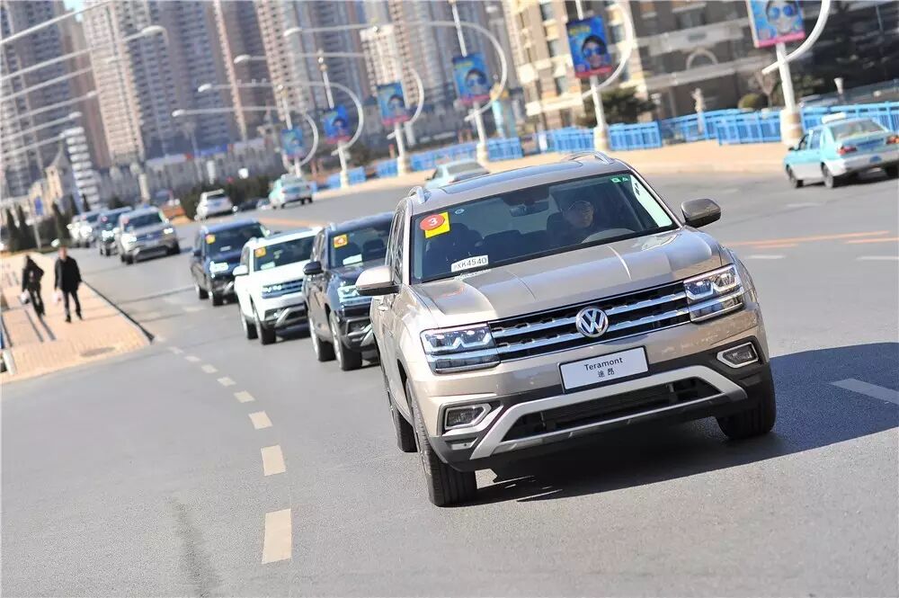 又一轮试乘试驾路线开始演练。气宇轩昂的途昂车队经过,惹来了路人的一阵围观。
