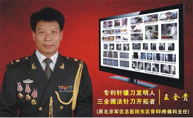 王全贵:北京军区总医院骨科专家,针刀、疼痛专家,原北京军区总医院东院骨科主任,疼痛治疗中心主任。
