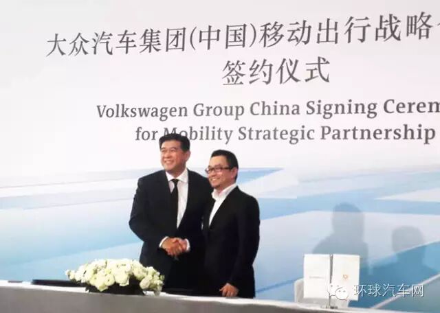 11月17日,正值广州国际汽车展览会之际,大众中国与滴滴出行正式就移动出行合作框架举行签约仪式,双方就新型产品、市场需求、品牌合作和数据技术等方面的合作进行沟通,争取为中国用户提供更加优质、安全和高效的出行服务。大众中国汽车集团企业战略兼市场及销售执行副总裁苏伟铭先生出席签约仪式,他表示:大众汽车集团正致力于从汽车制造商转变成以人为本的可持续移动出行解决方案提供者,更好的引领中国市场的出行服务潮流。与滴滴出行建立战略合作框架,可以让大众汽车在不断满足消费者出行需同时,发展自我,实现合作共赢。滴滴出行杨俊在签约时表示:作为全球规模最大、增长最快的移动出行市场,中国的出行效率亟待完善和发展。滴滴将秉承 “让出行更美好” 的slogan,通过智能调配将交通工具无缝连接,争取建更有活力的新型都市出行模式。杨俊先生在签约结束后表示,今天将是伟大的一天,我们有理由相信,大众中国与滴滴的历史性签约将会成为移动出行创新未来的标志性里程碑。大众中国与滴滴出行作为长期的战略合作伙伴,将最大化地整合创新资源,配合现今互联网生活的普及,更加积极地推动智慧城市交通体系的完善与发展。