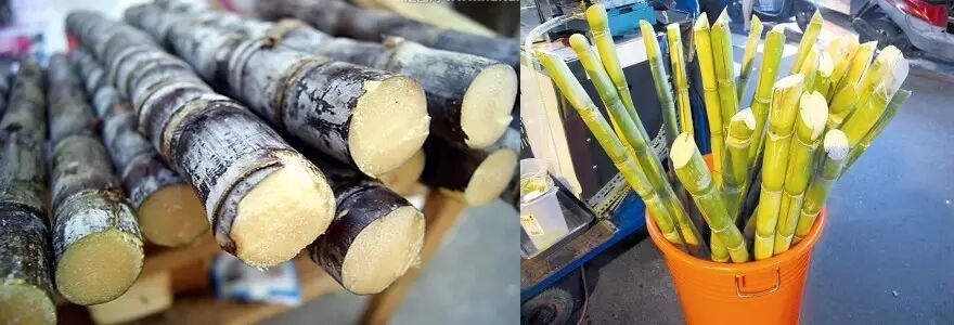 常见的甘蔗有两种,黑皮和黄皮。街上鲜榨的甘蔗水和家里煲的甘蔗红萝卜汤,用的都是黄皮的甘蔗,因为黄皮的甘蔗清火,而黑皮的甘蔗性热。