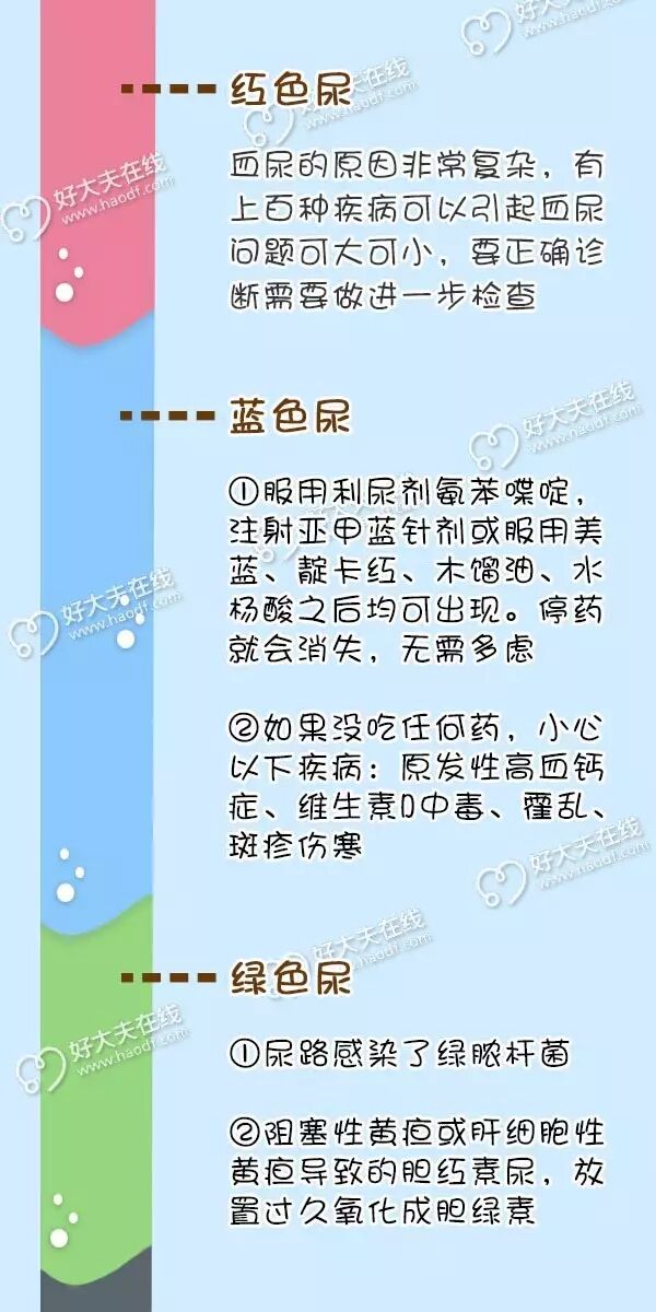 小提醒:生活中若遇到尿液颜色变化,提高警惕但不要慌张。先回忆一下自己的用药、饮食等情况,将相关情况告知医生并进行尿常规检查,一般都可以很快查明原因,有问题也能得到及时的治疗。