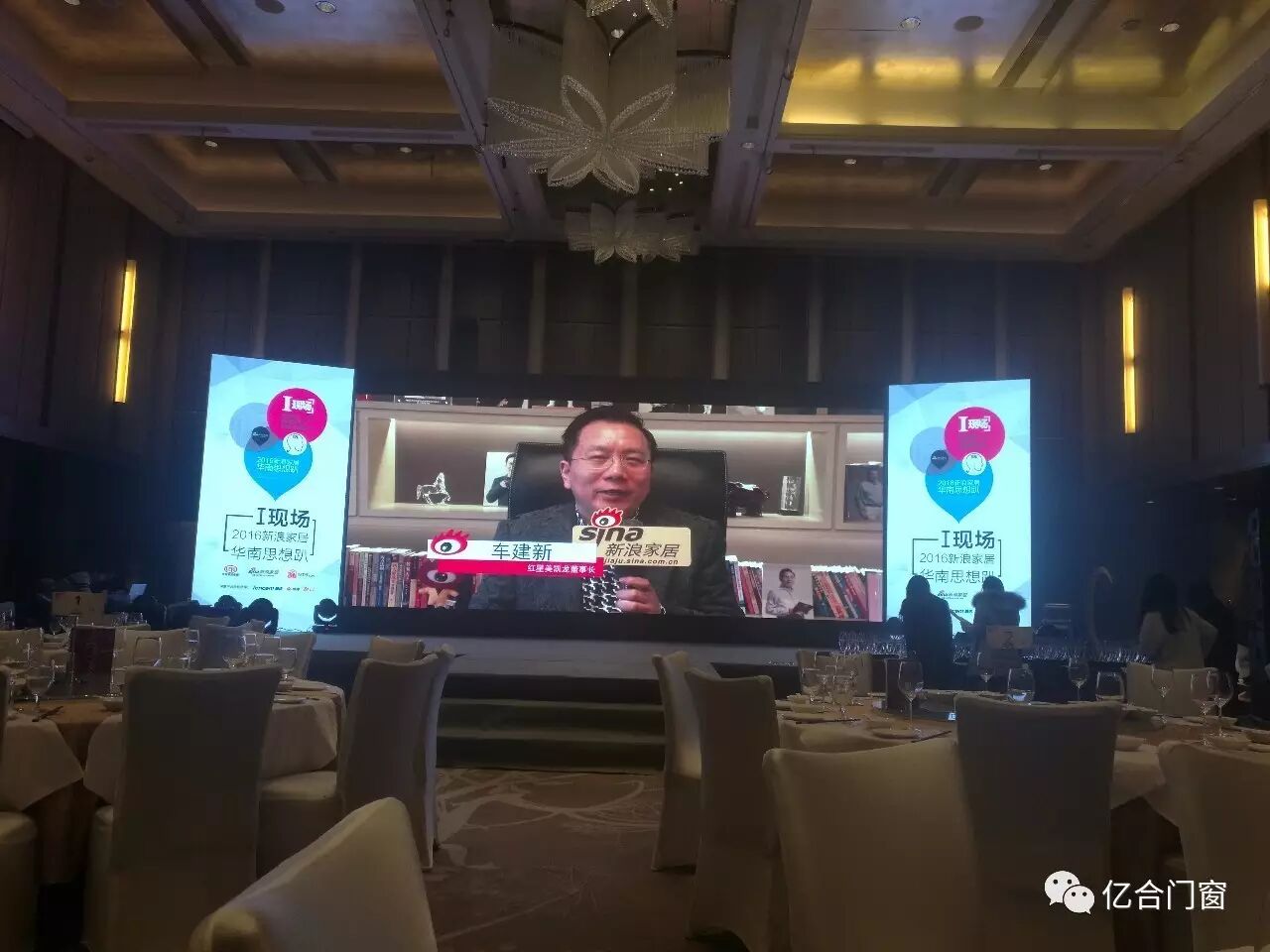 2016年12月27日,新浪家居华南年会“I现场——新浪家居华南思想趴”在广州喜来登酒店隆重举行。家居行业的知名媒体人、家居行业名企大咖云集,现场举行行业大咖圆桌盛会,广东亿合门窗科技有限公司作为特邀嘉宾企业,营销总监申畅、销售经理曾波应邀出席。