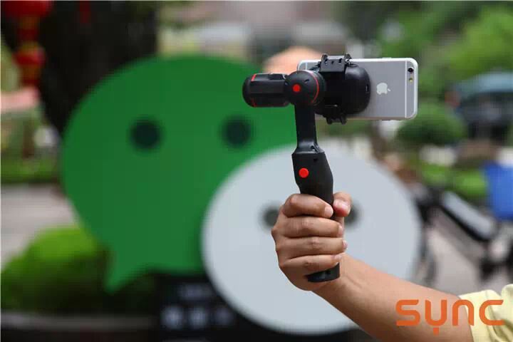 哦,原来是这个东东啊。“SYNC智能稳拍”,看来似乎是个稳定设备。手机产业已无革命性的技术进步,所以厂家都在边边角角寻求战术性的局部突破,手机拍照或者摄像的稳定,也是一个重要的方向。iPhone 6和近期发布的一些安卓高端机,都把光学防抖作为重要的卖点,而在视频拍摄方向,镜头的防抖作用不大,需要专门的稳定设备来配合。现在电影工业在移动镜头拍摄时一般都用一种叫做“斯坦尼康”的机械重锤式稳定设备。