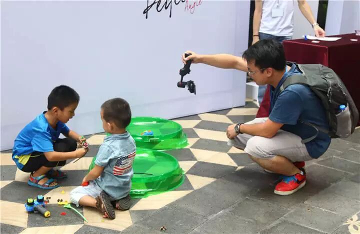 在发布会现场,前半部分是到会嘉宾和媒体的各种体验活动,低位拍孩子,在体感车上移动拍摄,运动拍摄模特,看得出来,这个产品很有趣,到会嘉宾玩得不亦乐乎。
