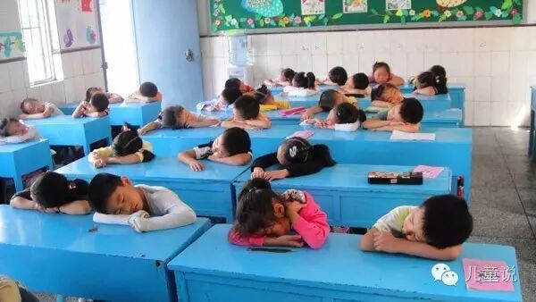 敲定了午睡的时间,曹校长和同事们又开始琢磨,让孩子们怎么睡。据了解,目前杭城小学专门安排午睡时间的不多,即便有,也多半是让孩子趴在桌子上,如下:
