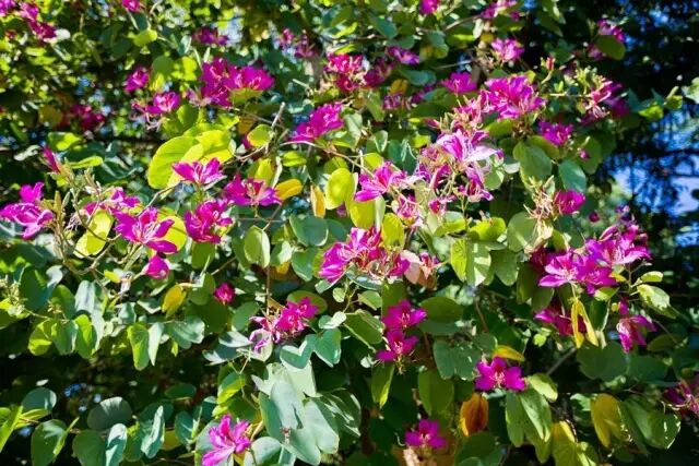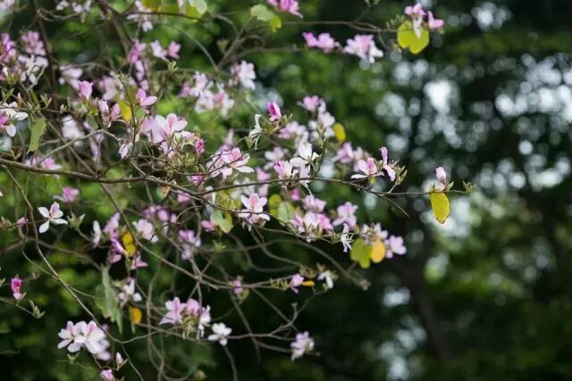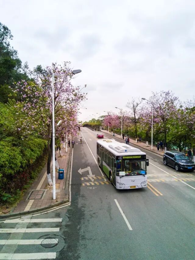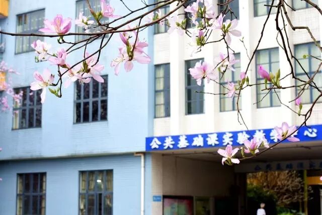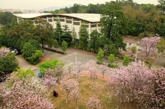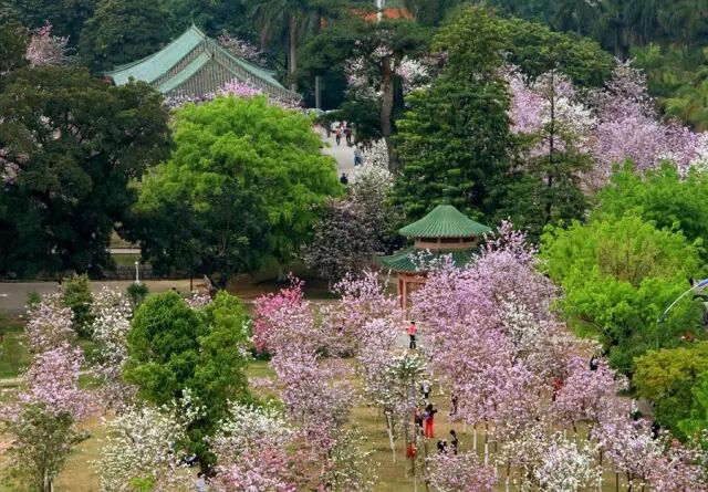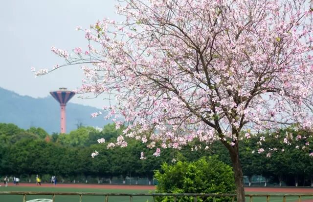 华南农业大学里面的紫荆花和樱花已悉数绽放