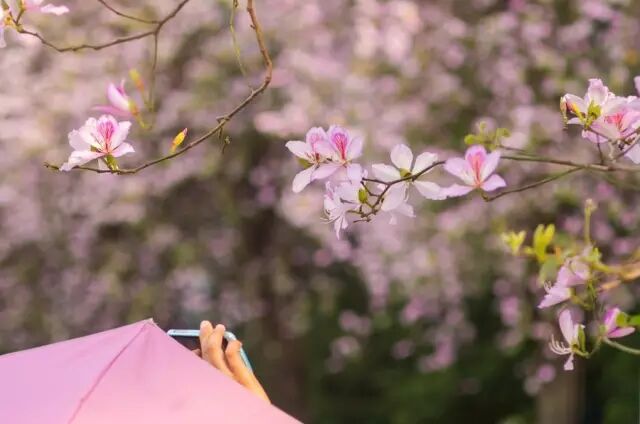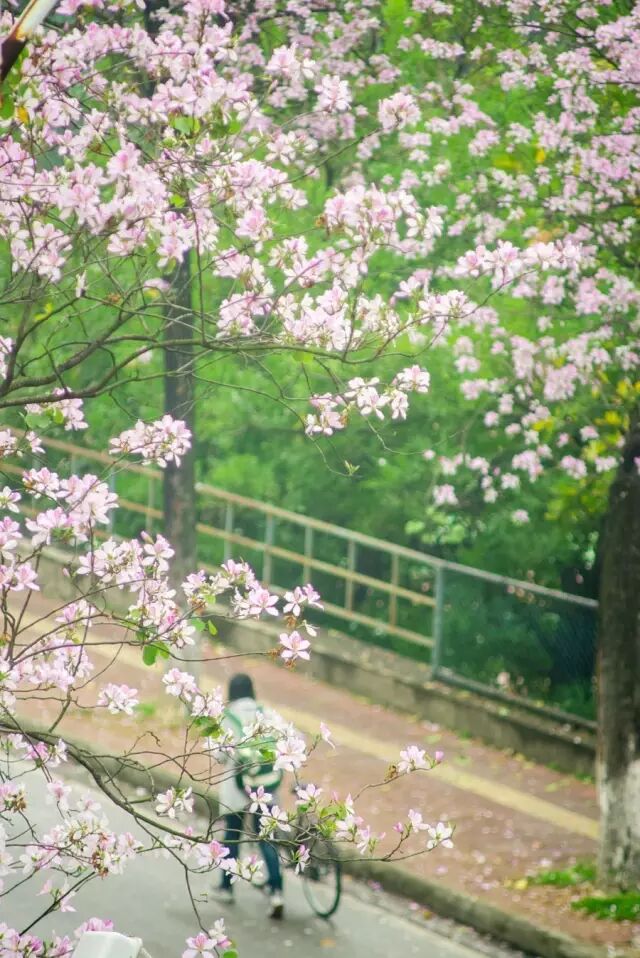 邀上好友一起到走到断腿的华农,捧着好喝的华农酸奶和果汁,整个校园沉浸在紫荆粉色的浪漫氛围中~