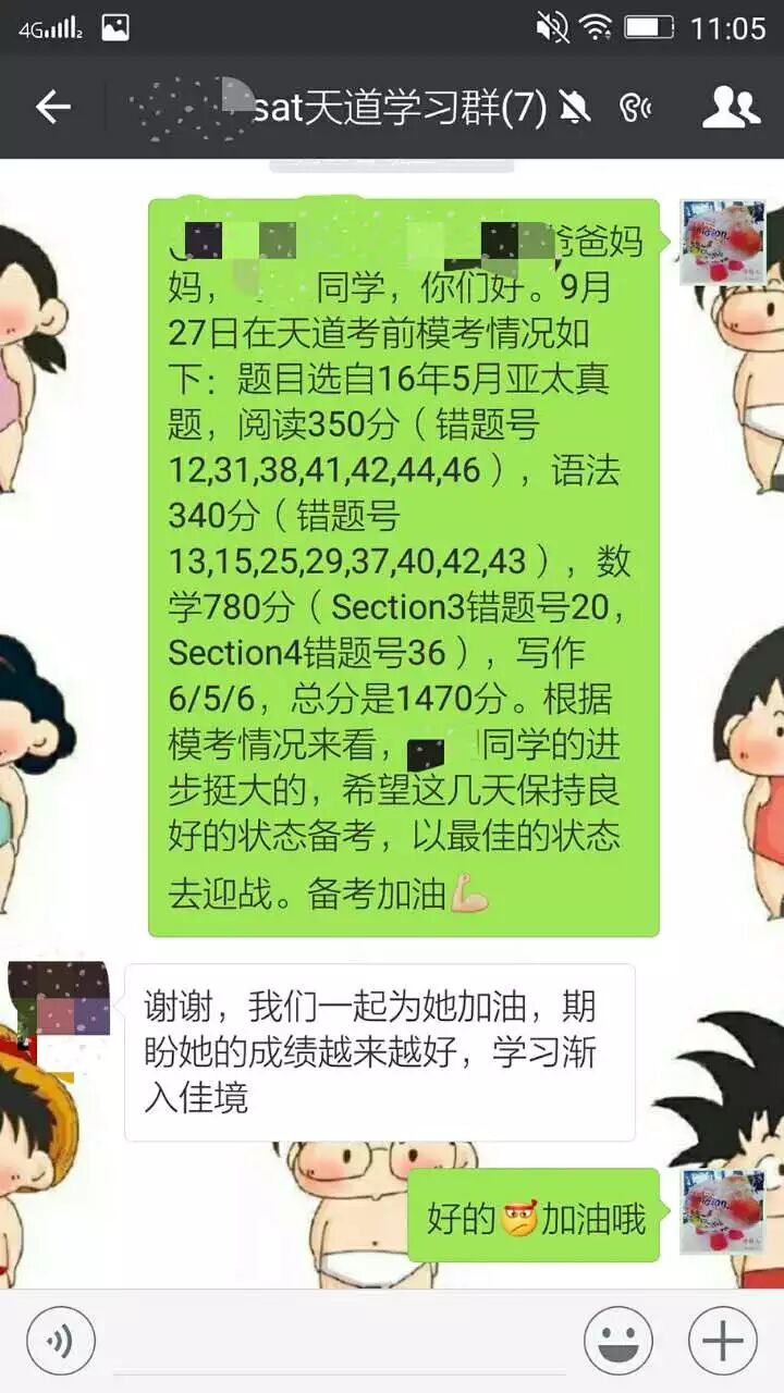李同学来天道学习SAT的时候是上两人小班,跟另一位同学互相帮助,借鉴学习经验。她对SAT是完全不了解的,也很长一段时间没有接触英语,感觉很陌生。
