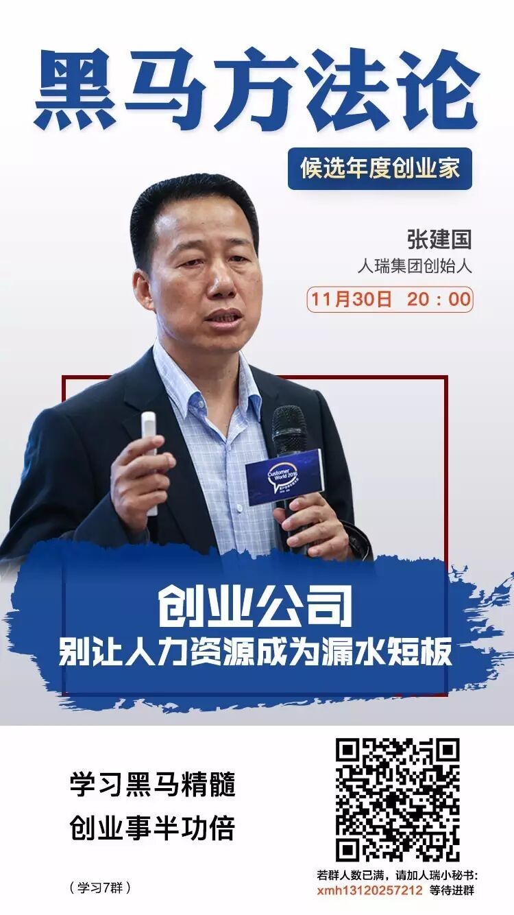 受黑马学吧邀请,人瑞集团CEO张建国将于11月30日晚八点做客黑马学吧直播。