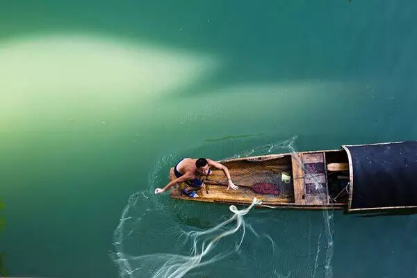 一棹孤舟,一撑蒿子,一渡船夫,穿梭在青山绿水中,流连于青天白云间。
