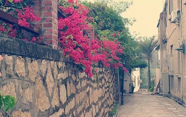 墙角拥簇着三角梅,远处不时还会觅来袅袅钟声。