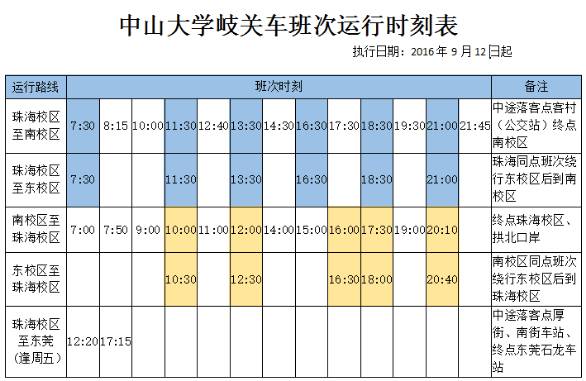 资讯 | 2017年春季学期广州及珠海校区交通班车时刻表