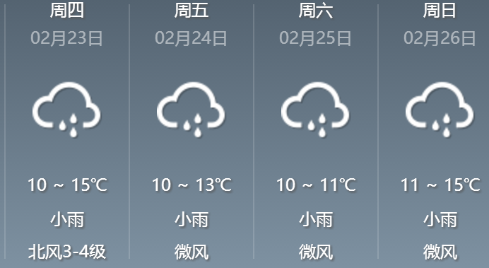 23-26日,我省维持阴雨寒冷模式,粤北山区将有5℃以下低温。