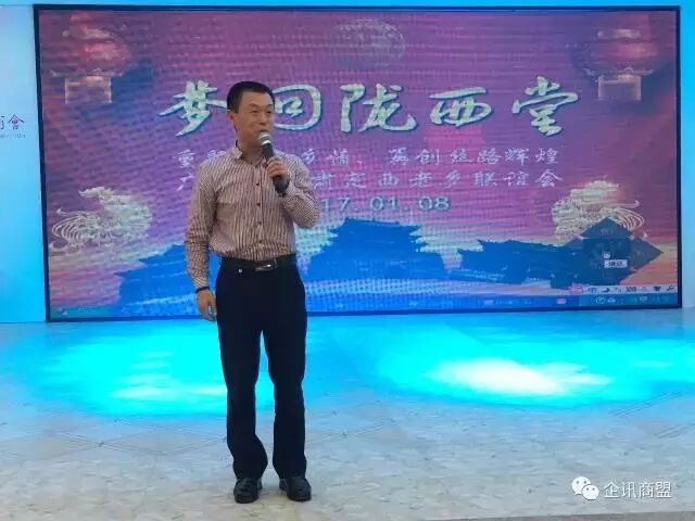 1月8日,以“梦回陇西堂”为主题的首届广东省甘肃定西老乡联谊会在广州市悦州山庄隆重举行,活动旨在重聚陇人乡情、再创丝路辉煌,在粤甘肃同乡近百人参加了活动,其中90%来自定西地区。广东省甘肃商会顾问郑丹晖老师,甘肃省政府驻广东办事处业务主任张文斌,东方艺术研究院常务副会长杨得一,佛山航道局办公室领导、陇西籍书法家杨海燕,商会常务副会长陈鹏飞,商会副会长闫吉祥,商会副会长徐炳彦,商会理事邵伟,商会理事漆亮以及其他各界嘉宾应邀出席。