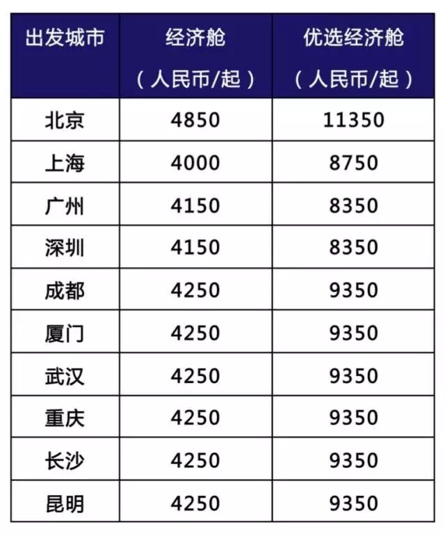 悉尼、墨尔本、布里斯班、阿德莱德、珀斯、堪培拉*(新航);