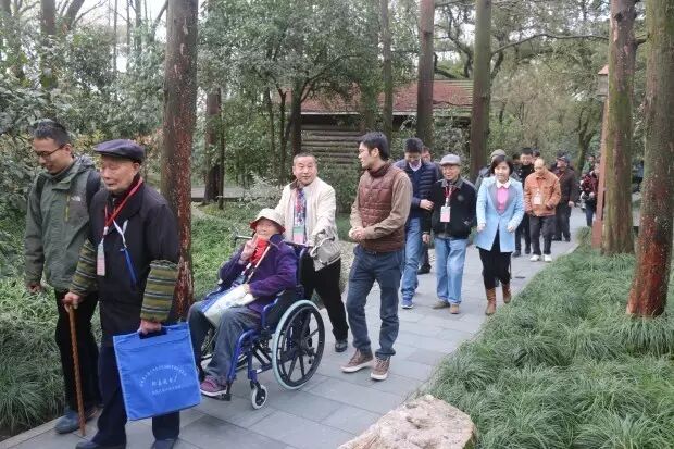 ▼老友记幸福团“春田花花游园会”活动,团员们与老人共游灵隐