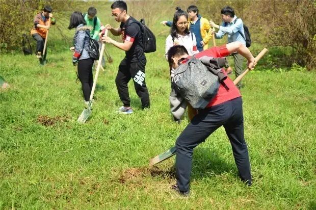▼UC幸福团“助力北江国家二级食用水源地保护”活动,团员们在江边植树