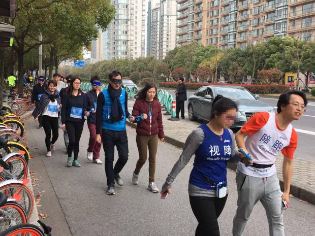 ▼乐申活幸福团的“视障助跑,让运动平等”活动,幸福团成员正与视障人士一同奔跑