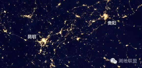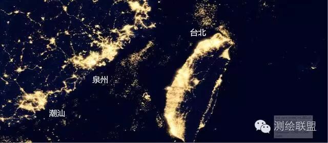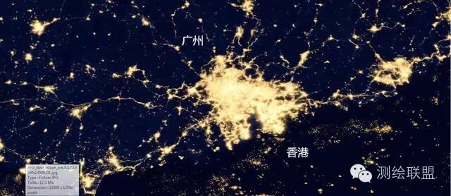 珠三角城市群,广州和香港、澳门已经连成一片了,亮度也很集中。