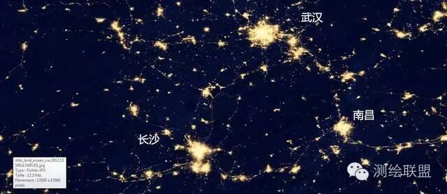 上图是中部省市武汉、长沙和南昌的卫星图,从图中可以看出,武汉的城建规模要大于长沙和南昌。