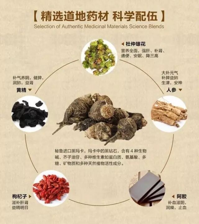 黑玛卡:“玛卡之中的黑钻石”,"玛卡之王“具有镇静安神、填精益气、调气活血、温肾壮阳之功效。