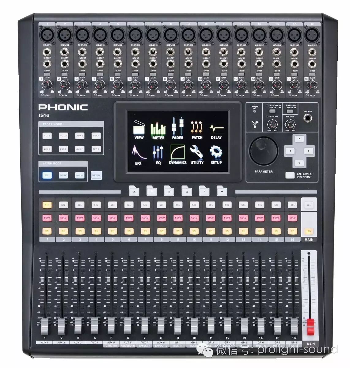 PHONiC IS16是一个超轻量精简,所有的输入和输出皆具备内建的参数EQs、延迟、噪声门、扩展器、压缩器和限幅器,具备远程和机控的高水平数字调音台。