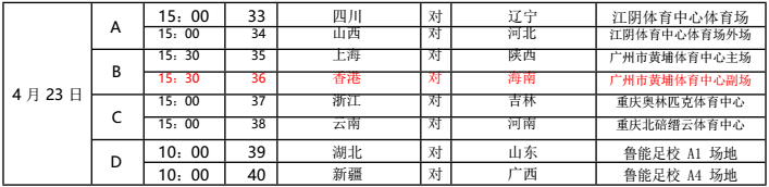 根据赛程安排,海南队与陕西、上海、广东、香港同分在B组。4月14日首战,海南队将迎战东道主广东队。4月18日,海南队将与陕西队进行第二场比赛,4月21日将迎来第三个对手上海队,间隔两天将对垒小组最后一个对手香港队。4场比赛均在广州市黄埔体育中心进行。每个小组头名直接出线,小组第二将进行附加赛,争夺一个出线名额。