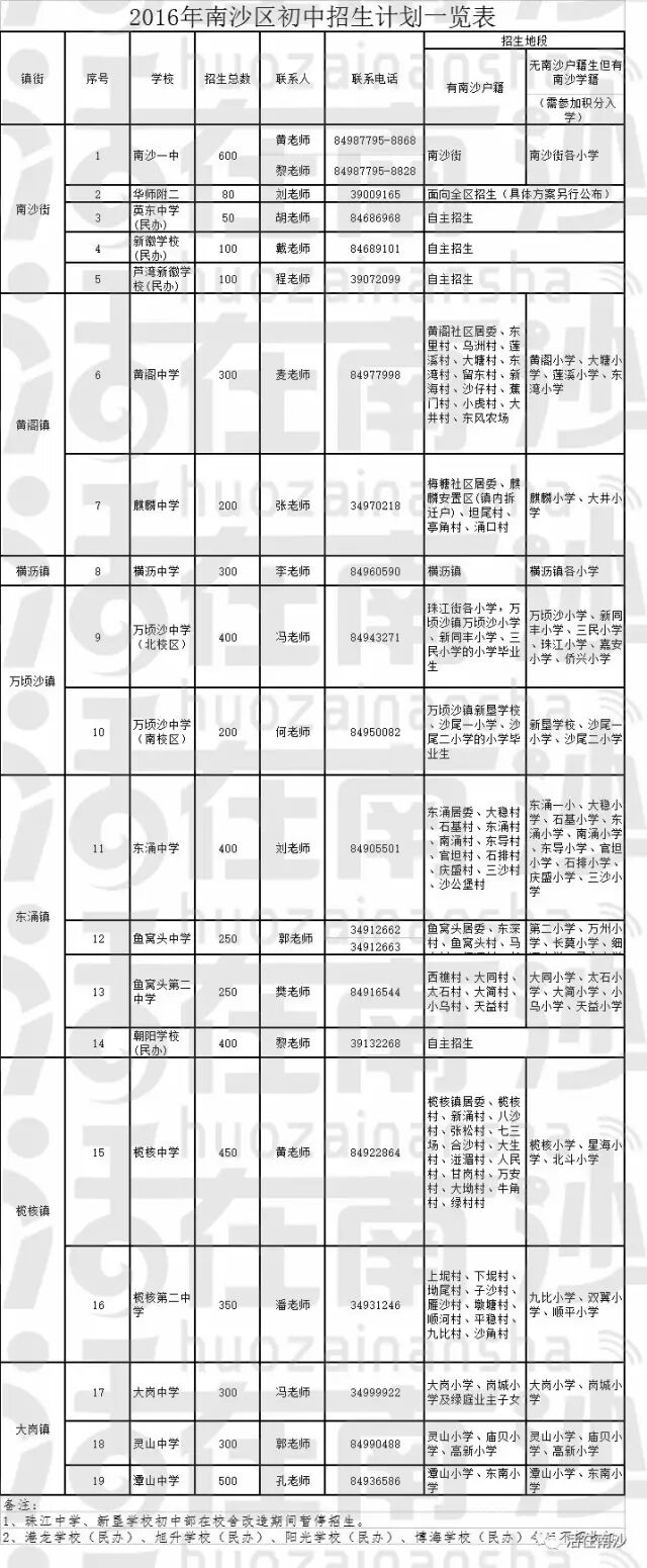 但需注意的是,指标计划分配时,南沙区三镇的初中学校只参加南沙区指标计划分配。