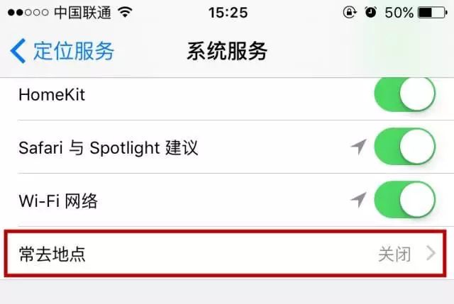 苹果手机有“常去地点”功能,会显示你经常去的位置。可点击“设置—隐私—定位服务—系统服务—常去地点”,关闭即可。
