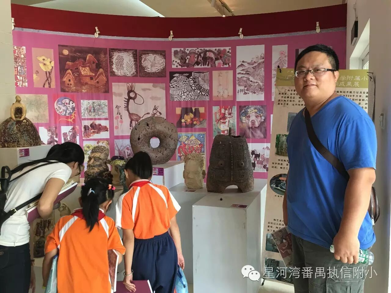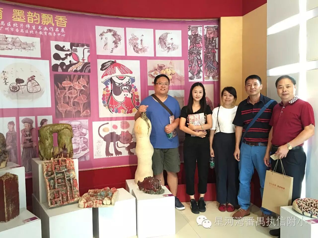 番禺区教育局体卫艺处林赛娥等领导和书画名家以及北片蔡主任出席此次活动,北片各学校校长,领导,美术教师和学生也一同参加活动。共展出一百二十多副作品,其中我校陶艺,版画共三十多副作品参加此次展览。