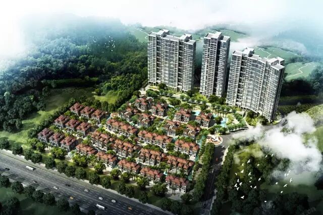 这个离市区不远的地方,难得能感受到五桂山青葱的树木下清新空气,没有市区的局促,山脚下的那一片理想之地,以一半为高尔夫球场,一半为居所建设的方式呈现。