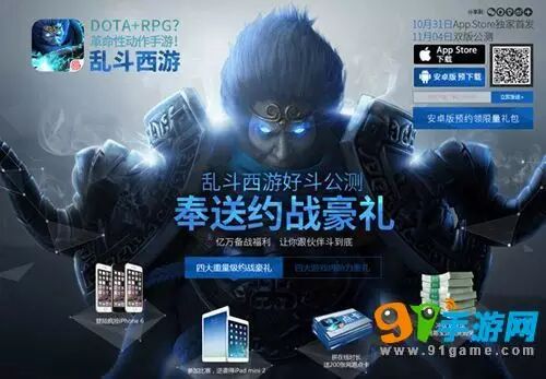 11月4日起,《乱斗西游》将正式登陆安卓、启动全平台的“好斗公测”,并同步开启盛大的公测活动:现在登录官网领取豪华新手礼包,即可在公测活动中先人一步,赢取包括iPhone6、iPad mini2和网易点卡在内的十万豪礼!