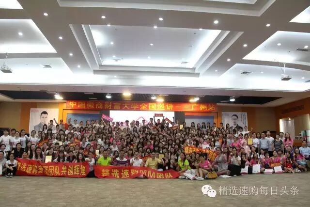 2016年6月26日,对于微商界,对于精选速购,对于精选速购的家人们,都是不平常的一天。这一天,《中国微商财富大学全国巡讲》——广州站,在广州顺利开幕了,来自全国各地近500名精选的家人们齐聚广州,共同开启了微商线下活动的新篇章,这也是精选速购大型线下巡讲活动走向全国的里程碑!