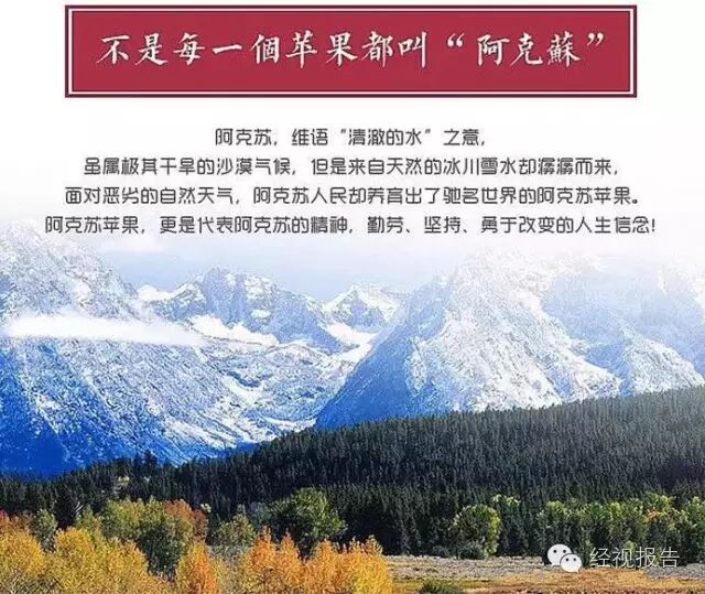 △全国首个森林食品生产示范基地打开【经视报告】公众号首页—点击【苹果预售】—【阿克苏苹果预售】即可进入购买通道
