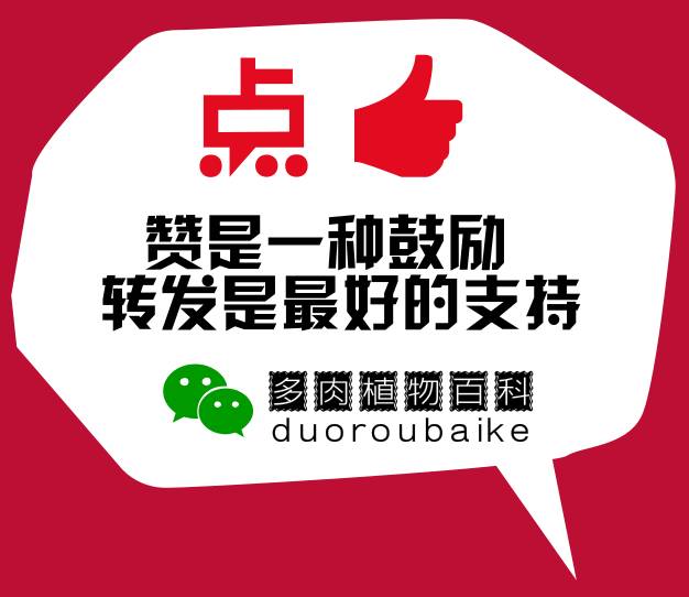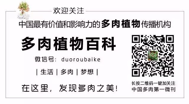 【版权说明】本文由多肉植物百科(微信号:duoroubaike)整理发布,版权归原作者所有,转载请注明出处!百科君尊重原创,向原创者表示感谢。转载文章前均会向作者申请授权,如有疏忽还望原作者见谅;部分文章无法查明原出处,故暂标注来源网络。如有侵权,请联系百科君!