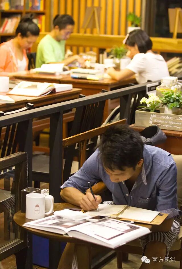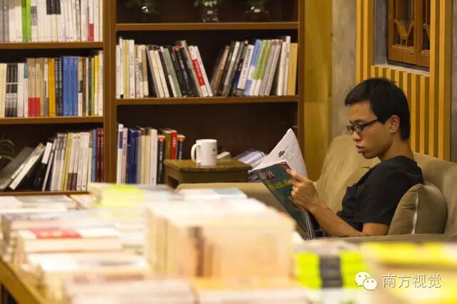 △店主刘二囍希望将书店经营成一个充满人情味的地方。书店店主刘二囍戴着灰色鸭舌帽,留着一点小胡子,特别文艺。这名毕业于华南理工大学建筑系的“学霸”,谈起开这家书店的缘由。他在台湾环岛旅行时体验诚品书店后深受感触,便萌生了在广州开一家类似“24小时不打烊书店”的念头。回广州后,他便与其他二十多个怀着共同梦想的股东开了现在这家书店。不过,刘二囍强调不只是复制诚品,“我更希望将书店经营成一个特别有人情味的地方,,摆放行军床,为无数个文艺青年提供免费留宿。当然,这需要长期努力。”即使窗外风声呜呜作响,也只是外面的声音,里面,只有书香和透过玻璃窗看到外面昏暗的天空。