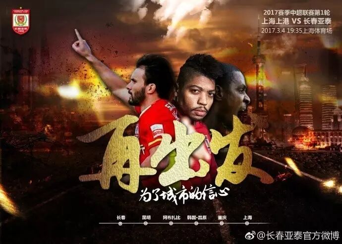 长春亚泰将客场挑战上海上港。赛前,长春亚泰发布了比赛海报,主题为:再出发。