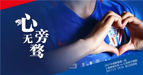 海报中身穿申花球衣的队员在队徽的位置比出一颗心,也代表着申花全体球员同心协力、为胜利而战的信心,显示出“心无旁骛”的主题。